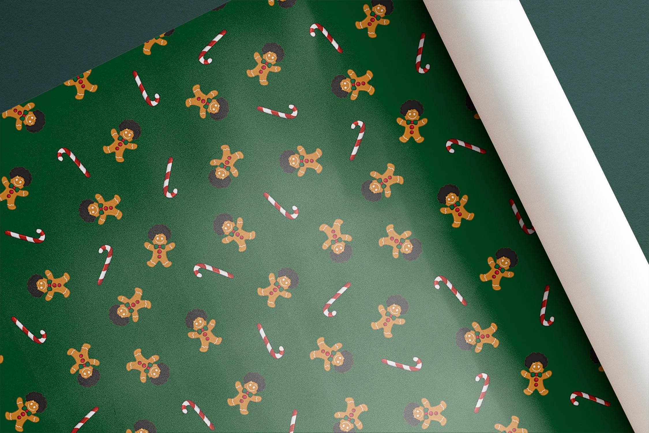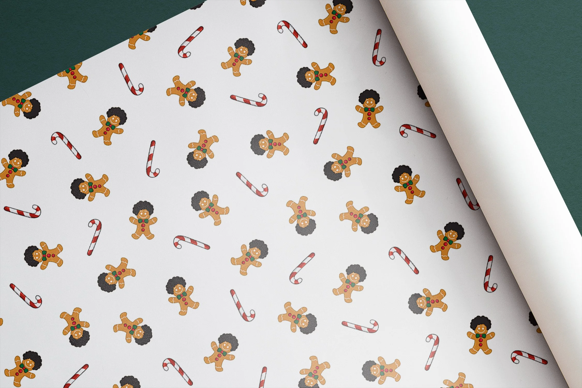 Jazz up your Christmas gifts with this unique Afro gingerbread man wrapping paper!